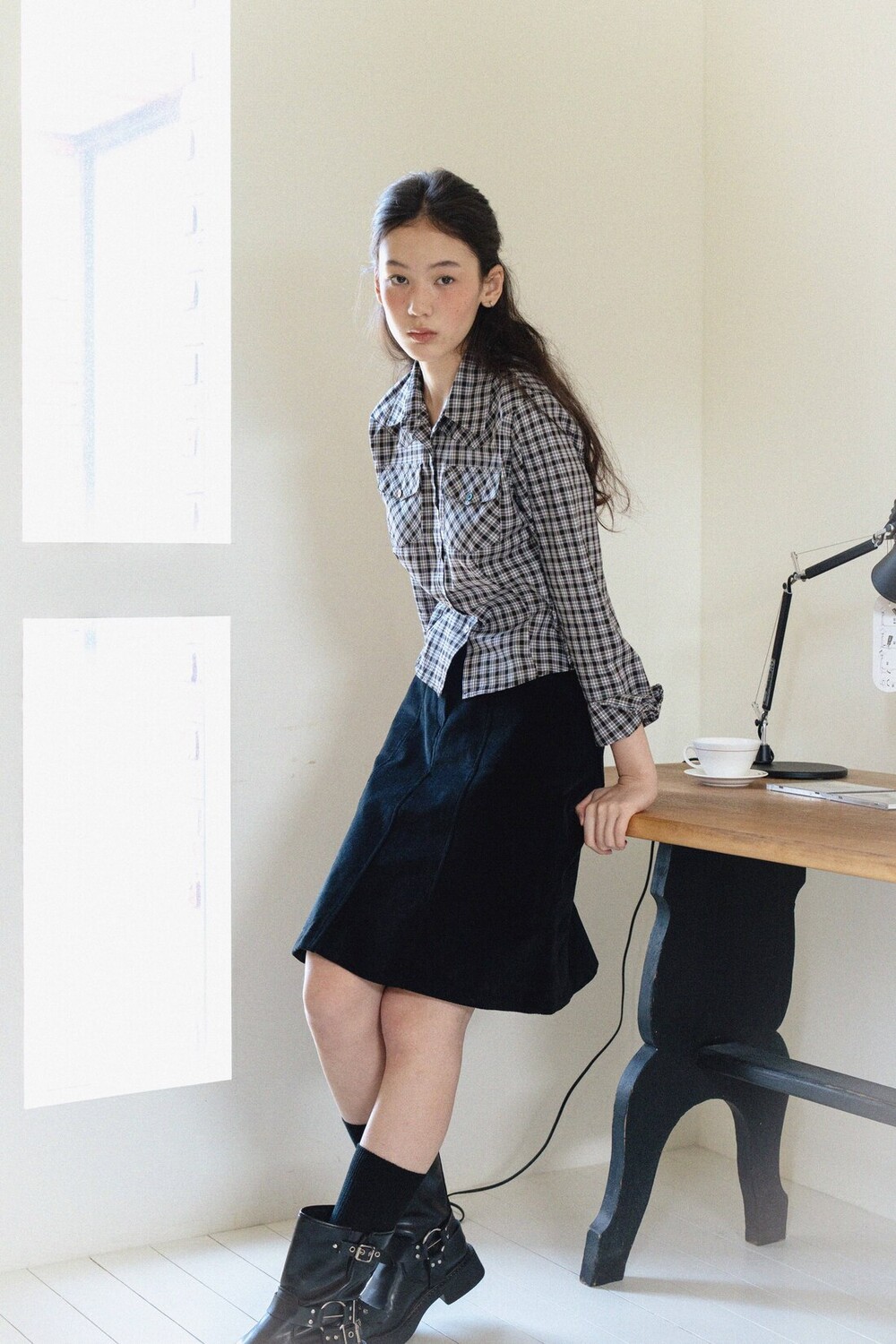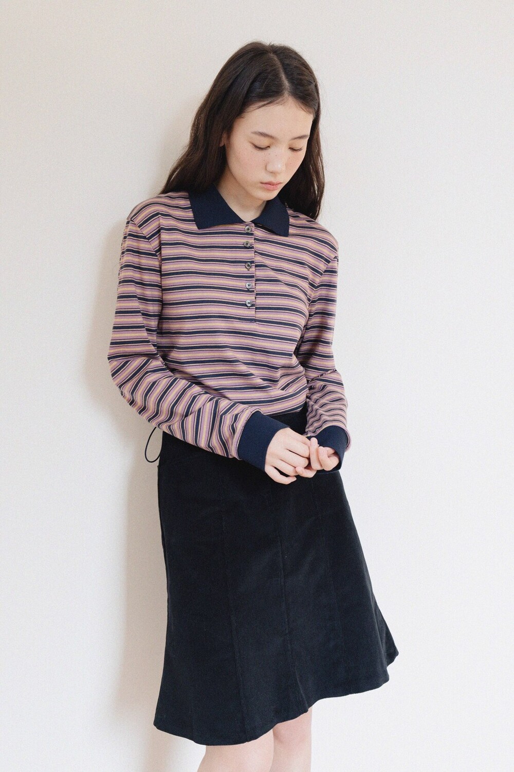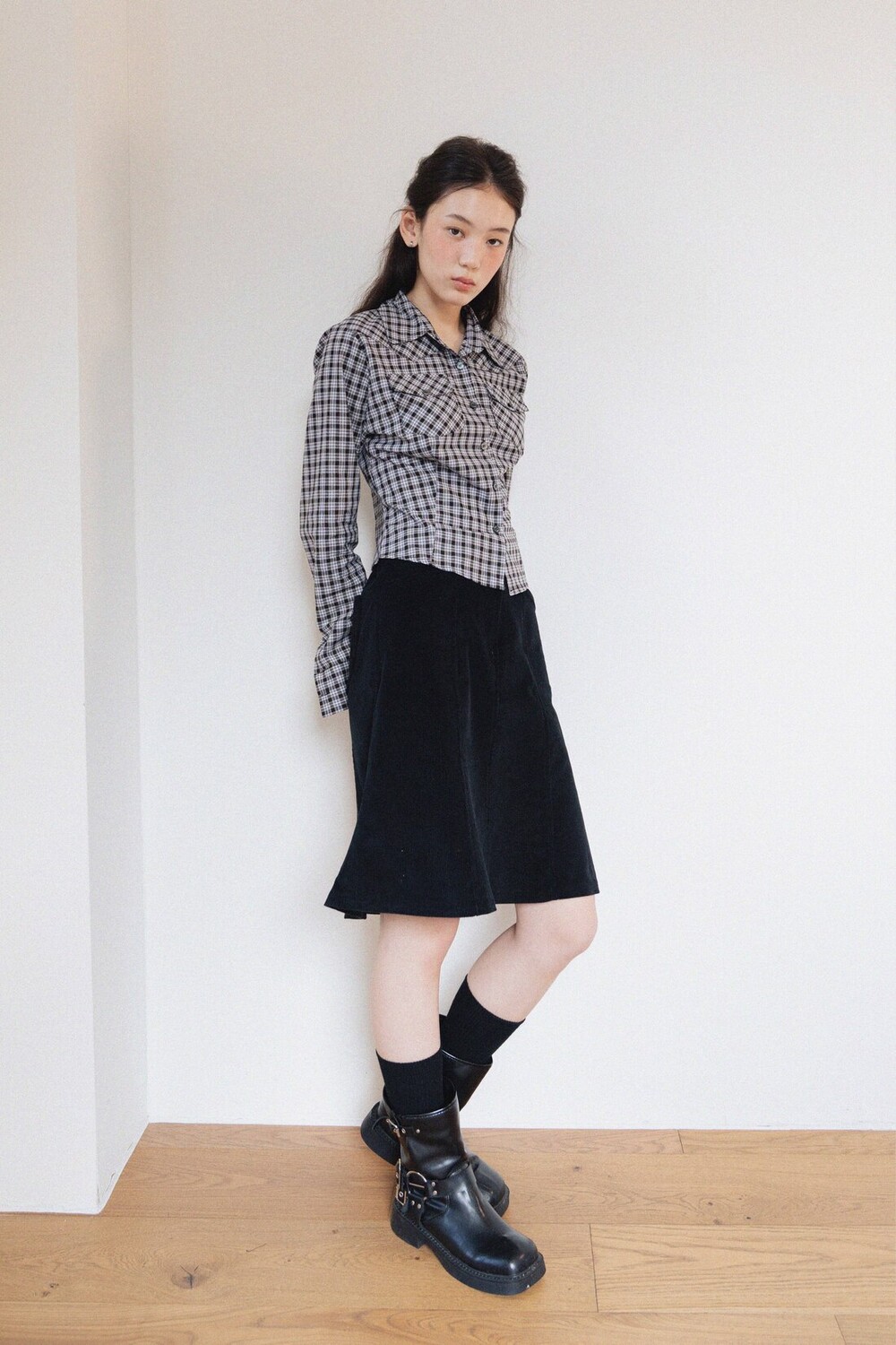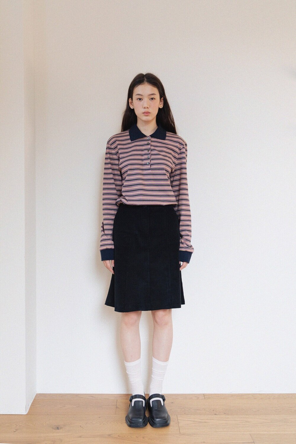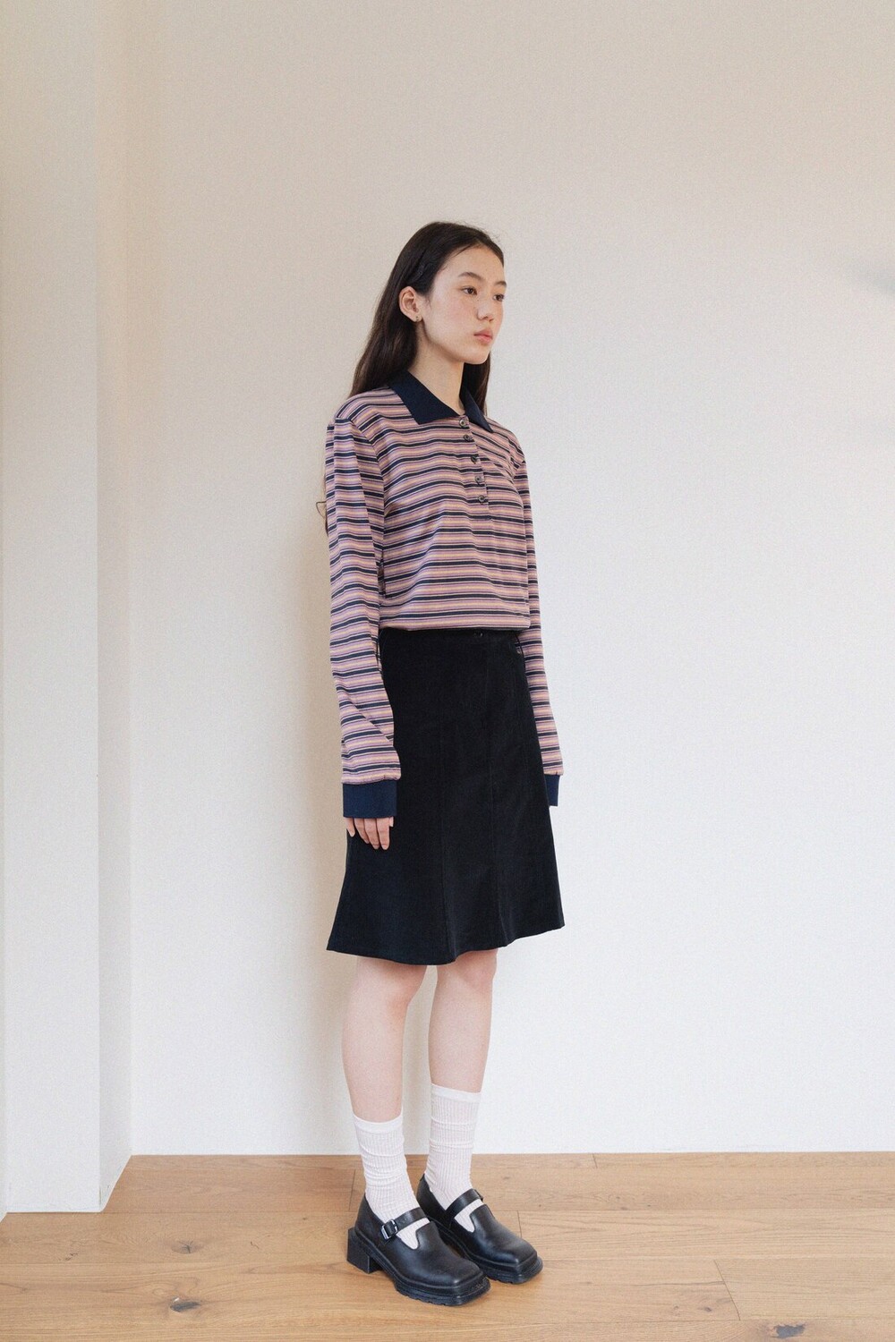 Cotton Midi Skirt-Black