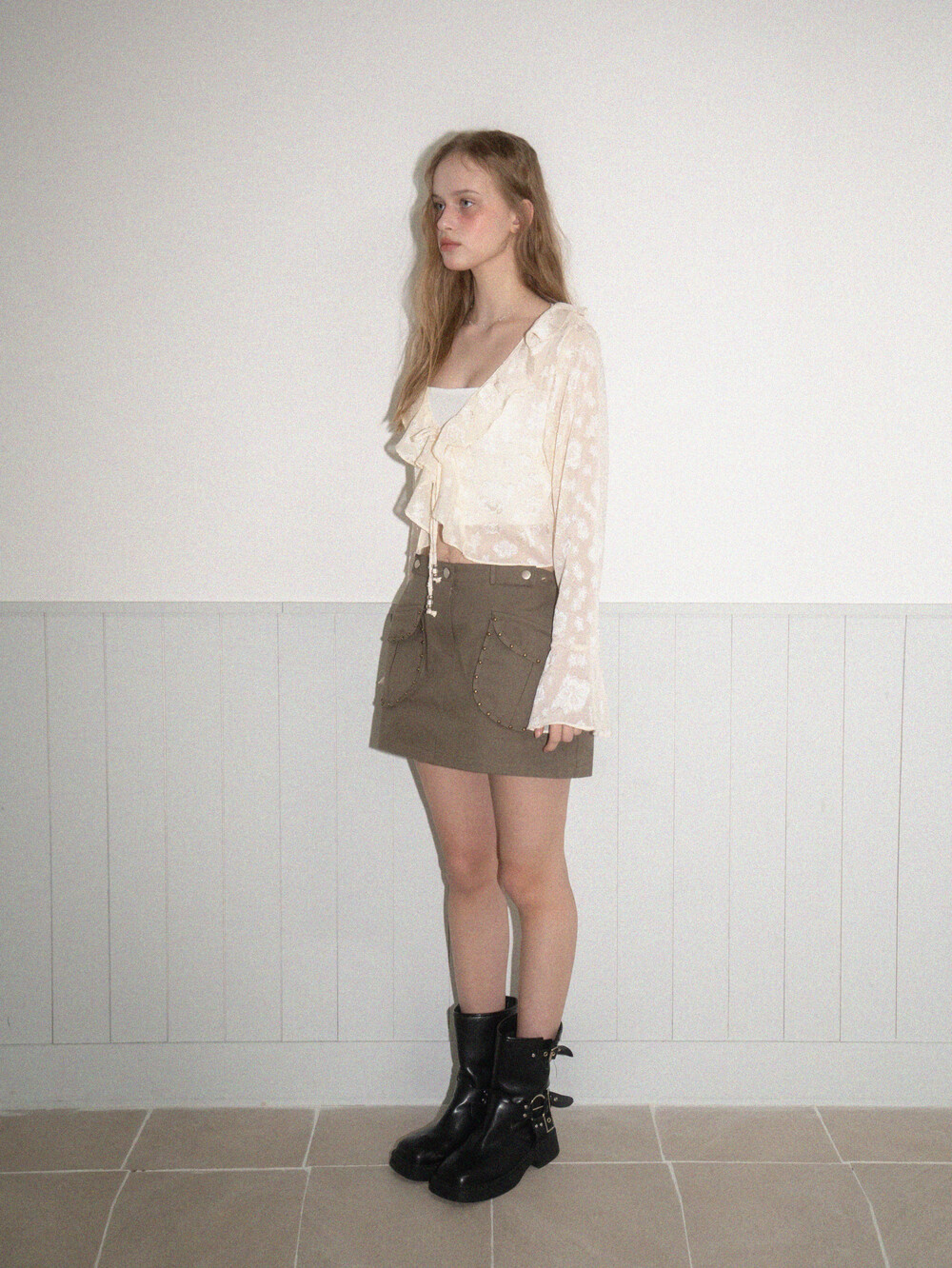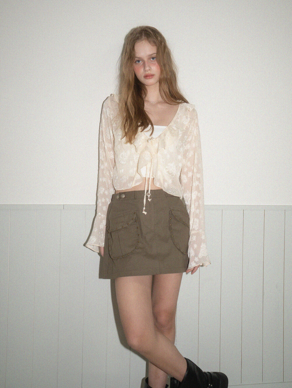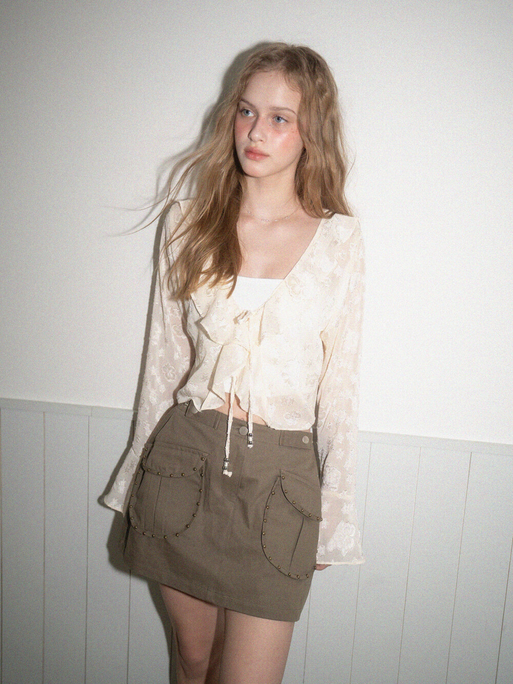 Frill star blouse-Cream