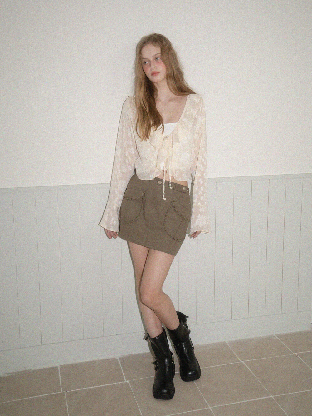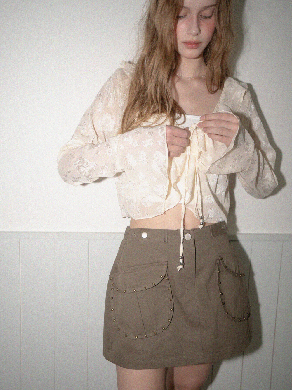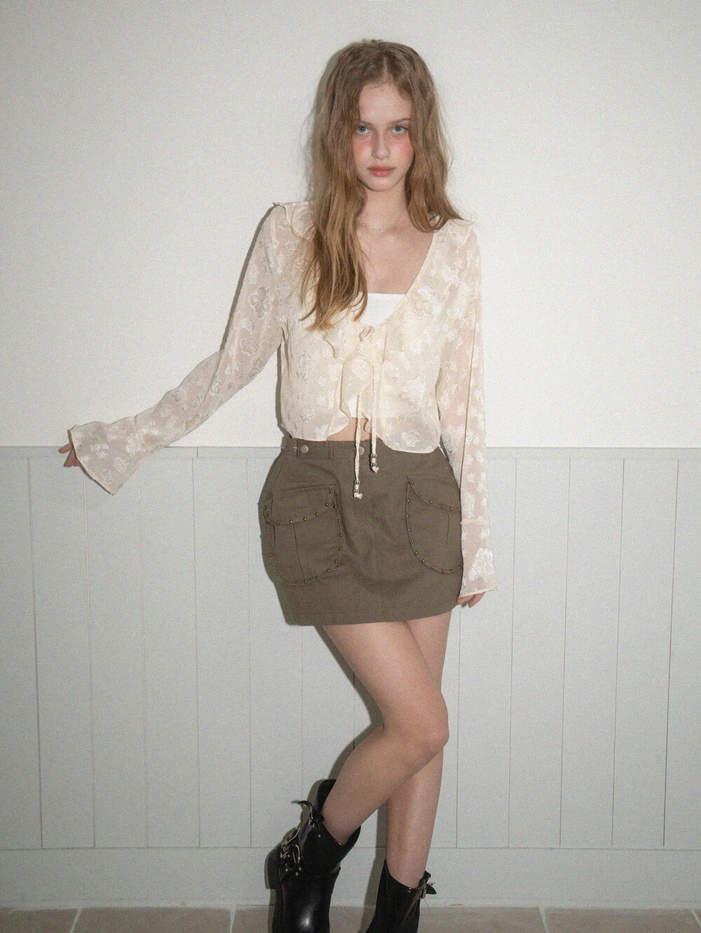Frill star blouse-Cream