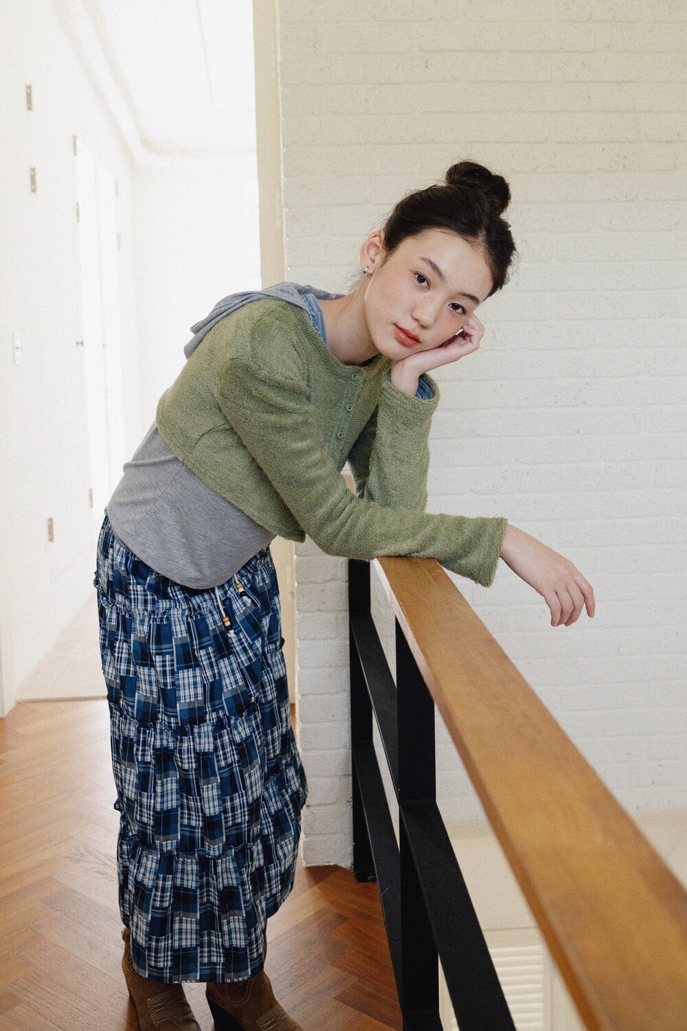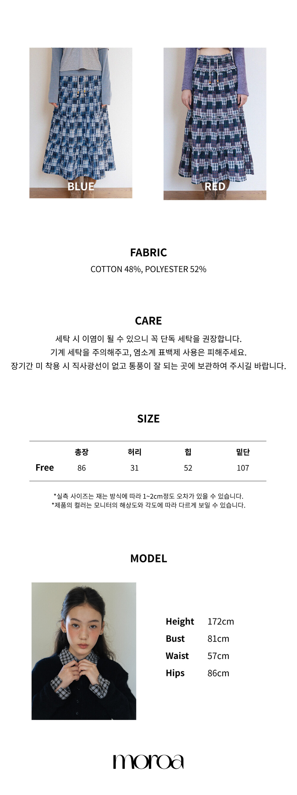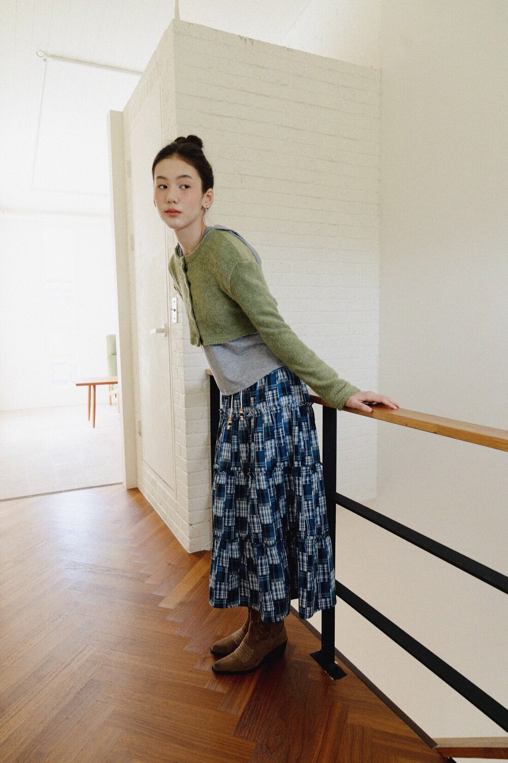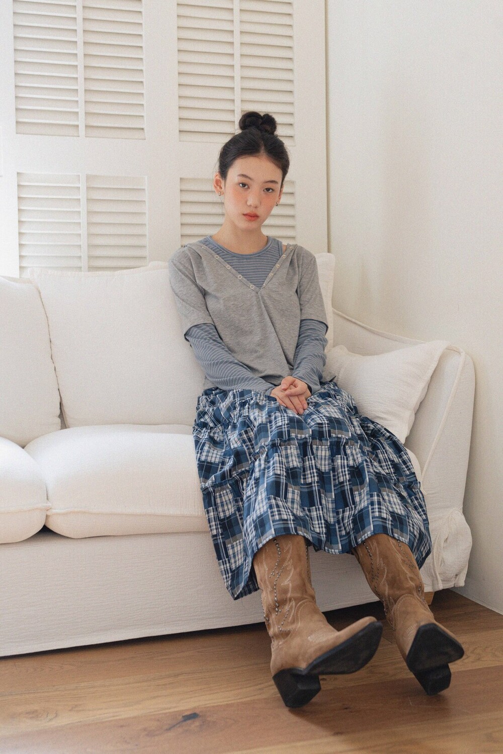 Patch Check Long Skirt-Blue