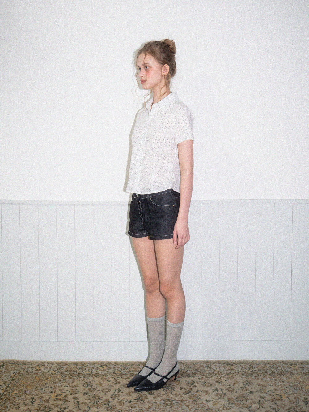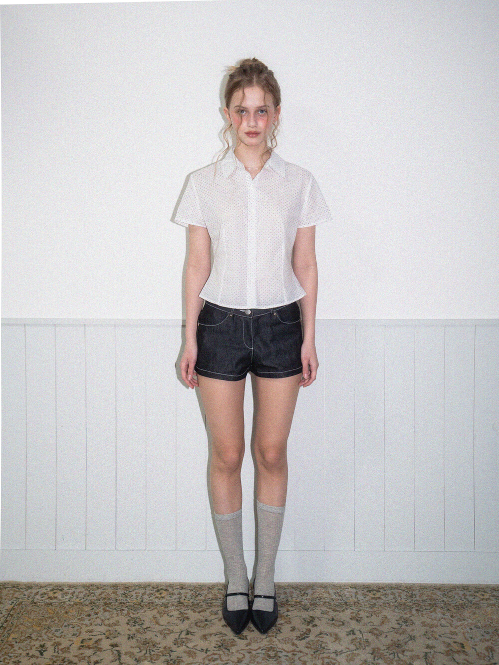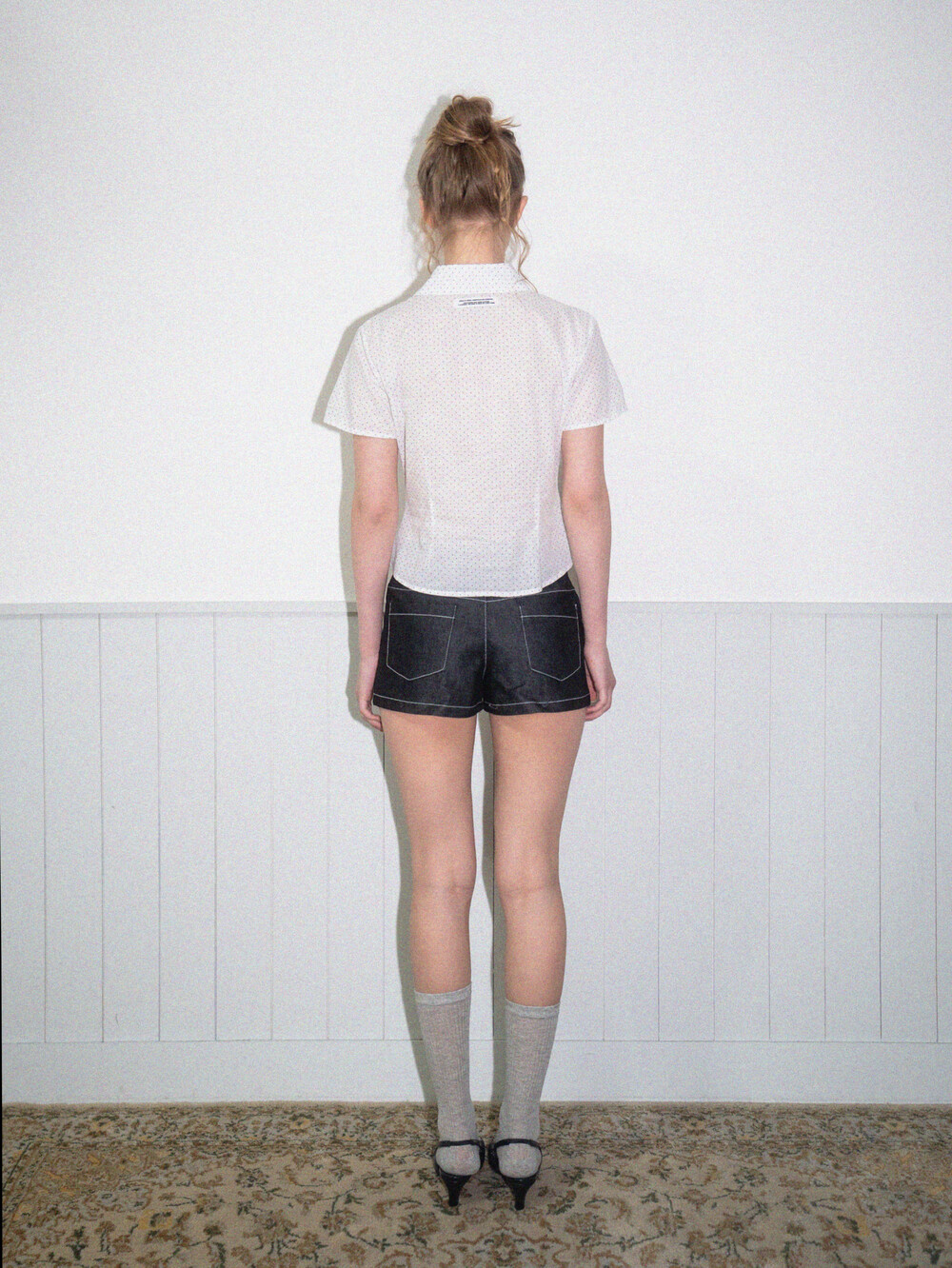 Star short denim pants-Black
