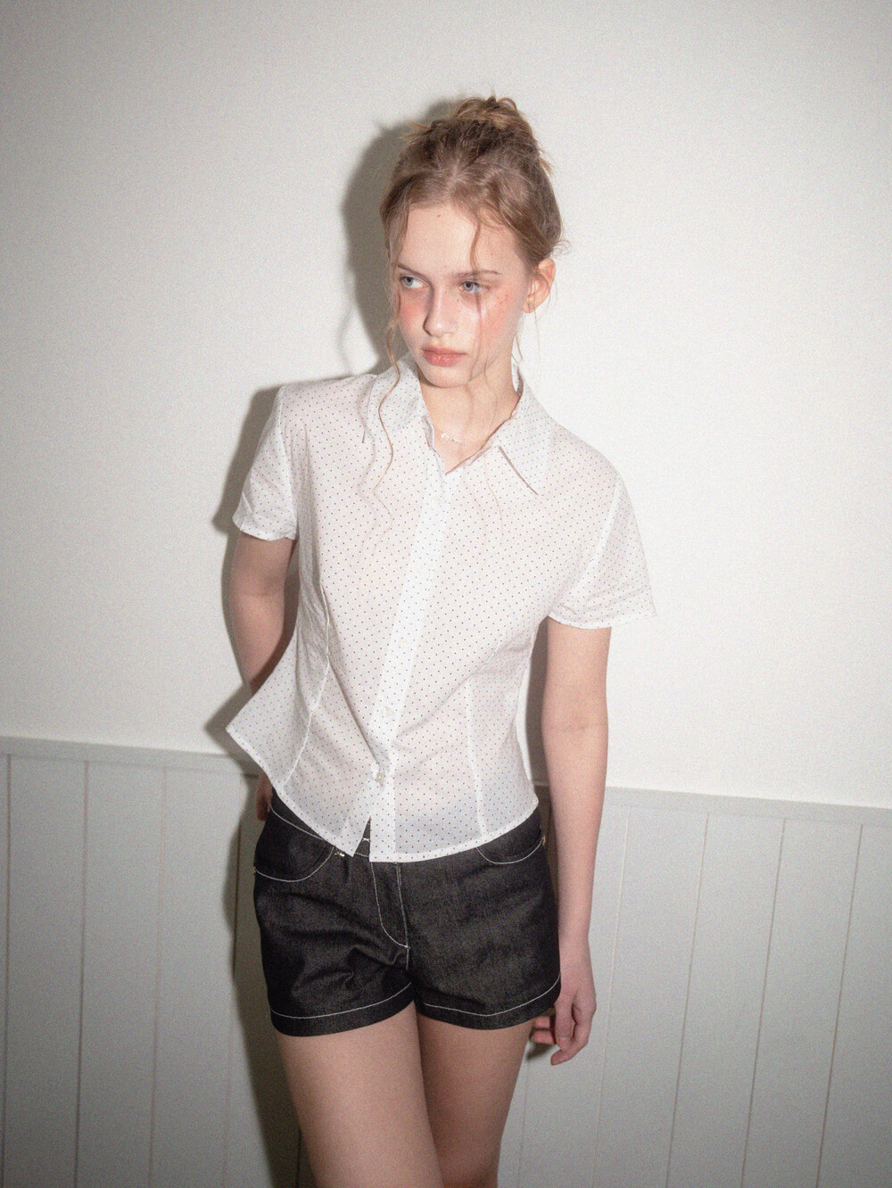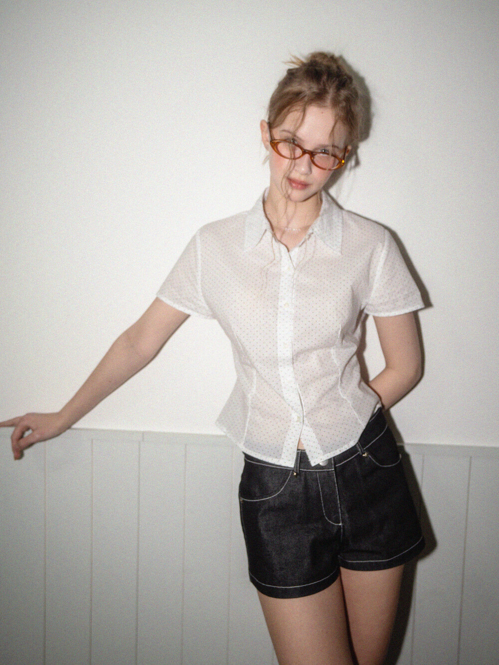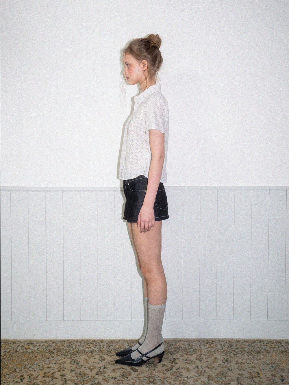 Star short denim pants-Black