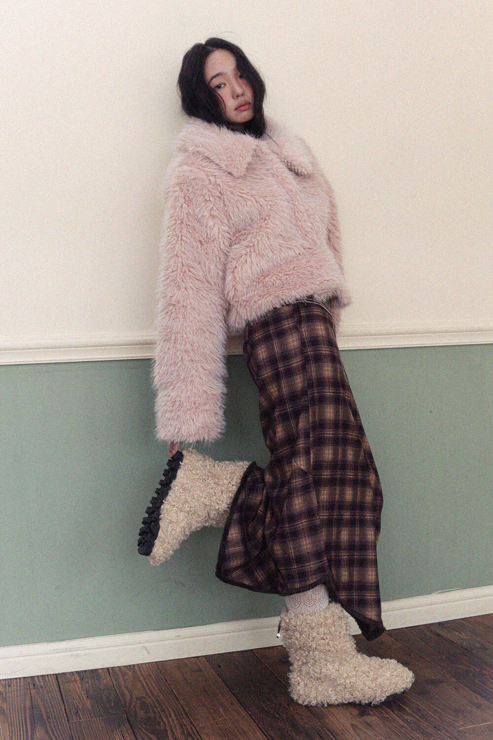 Check Fringe Skirt - Purple