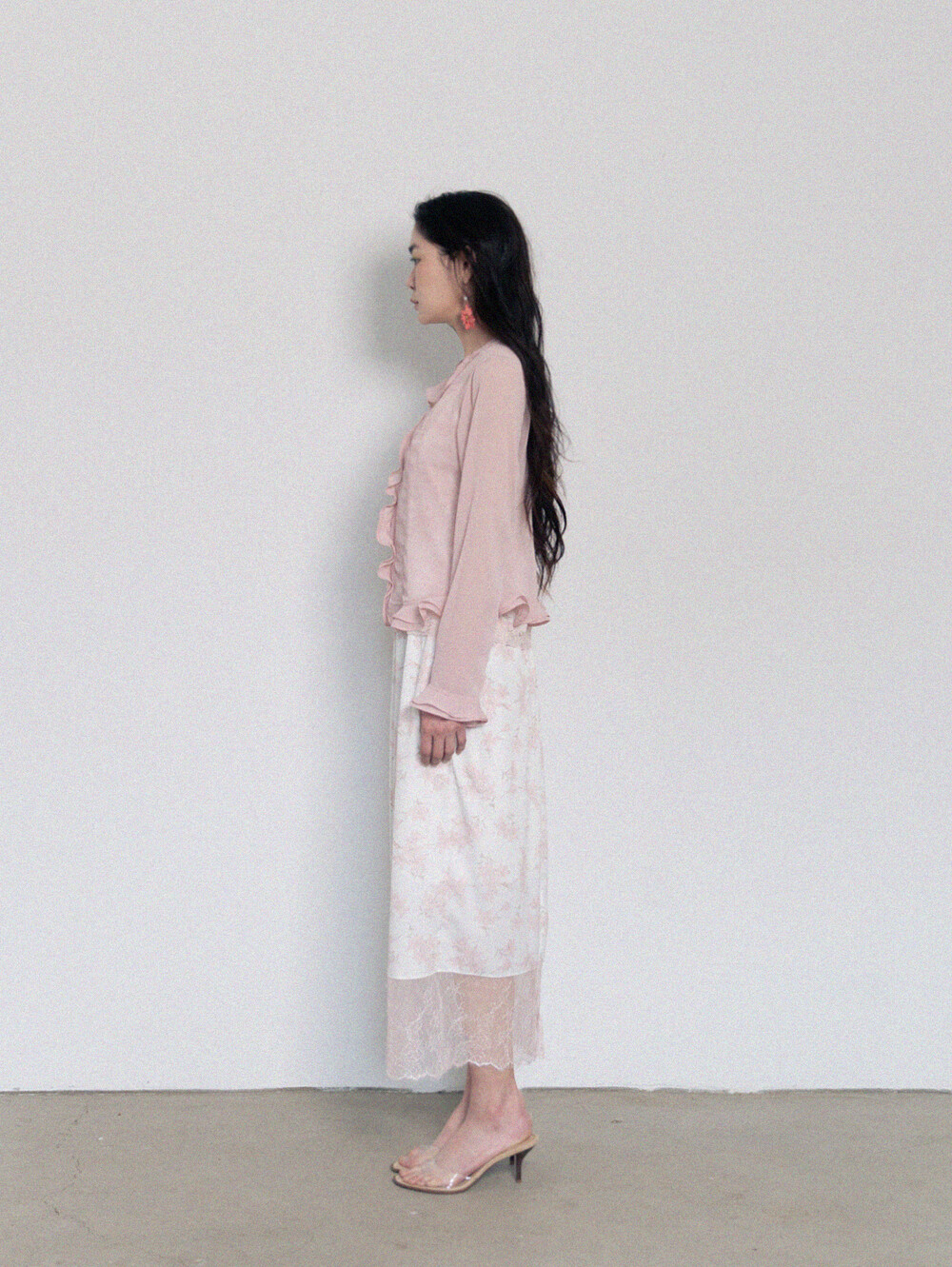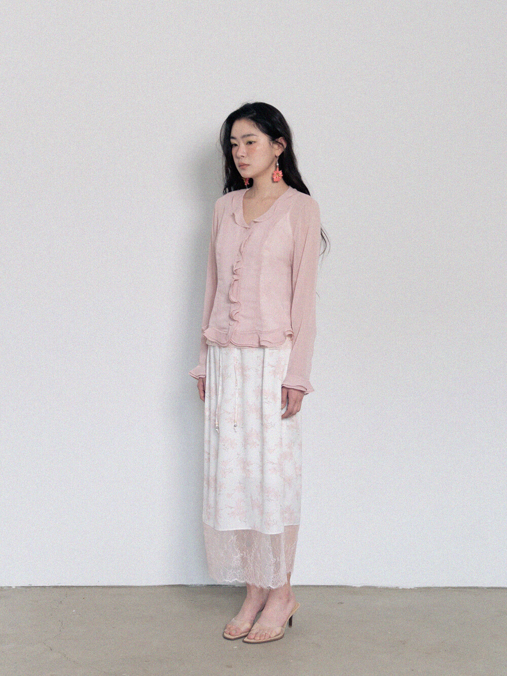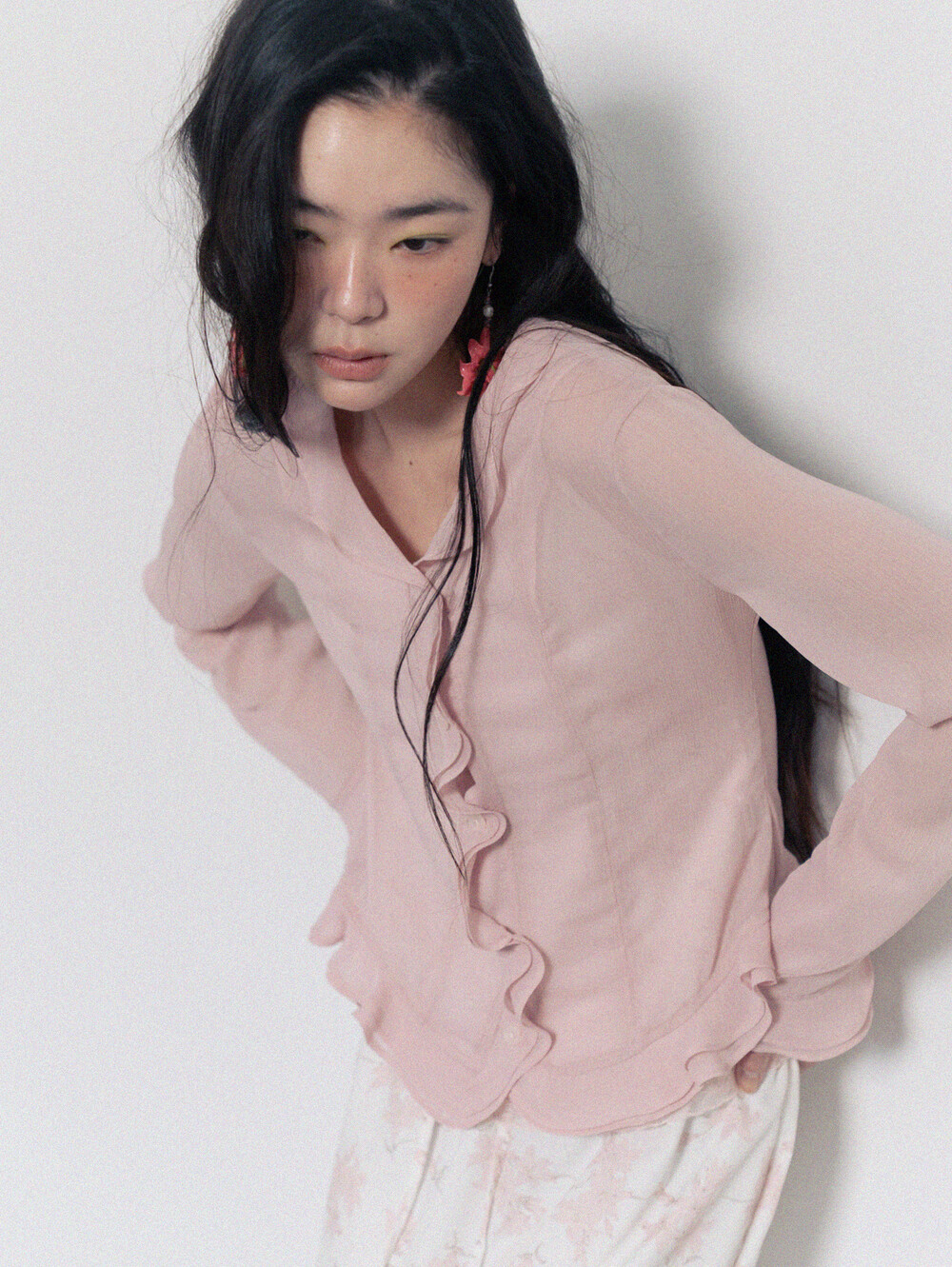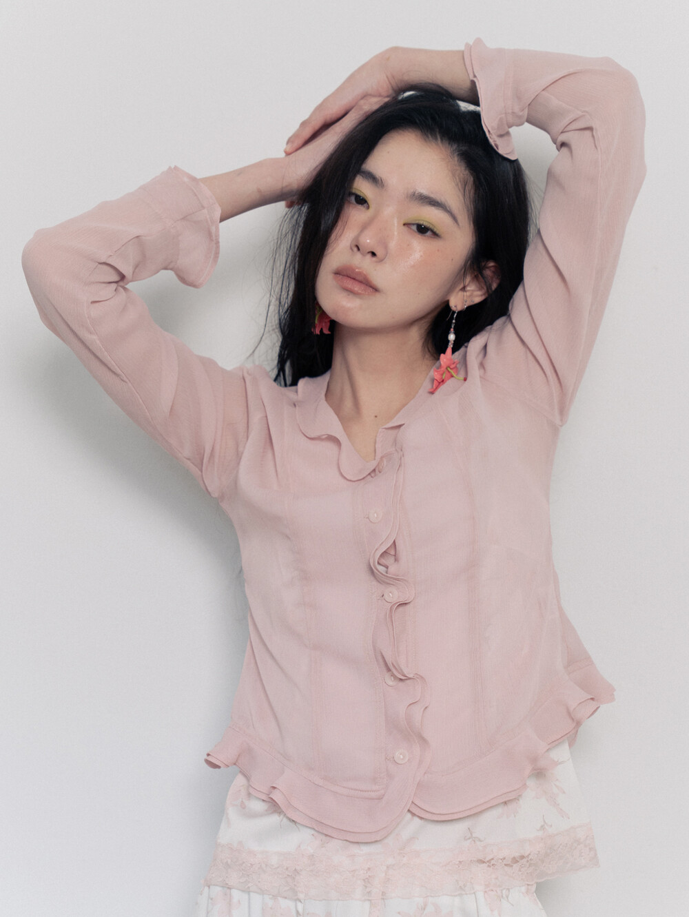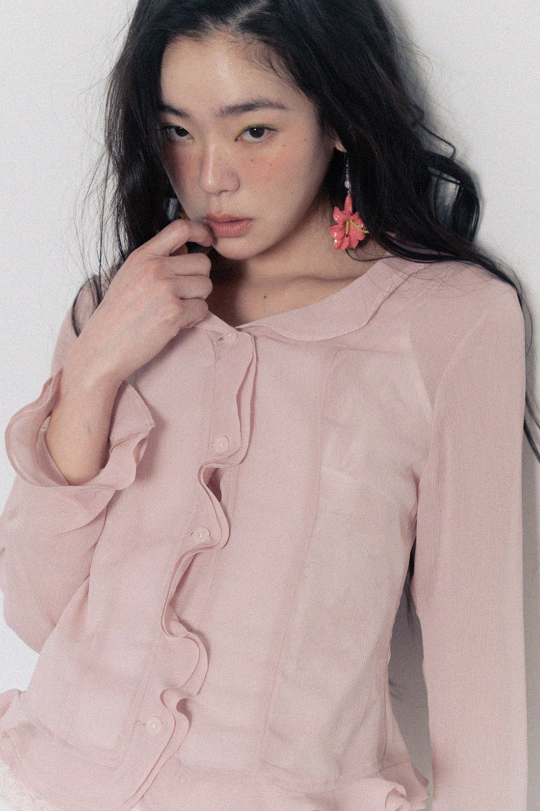Sheer Frill Blouse-Pink
