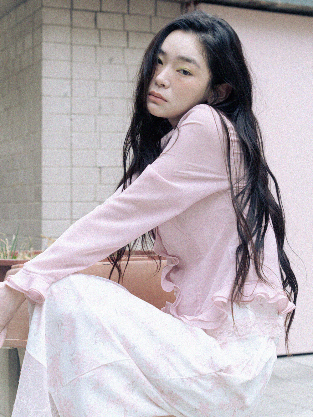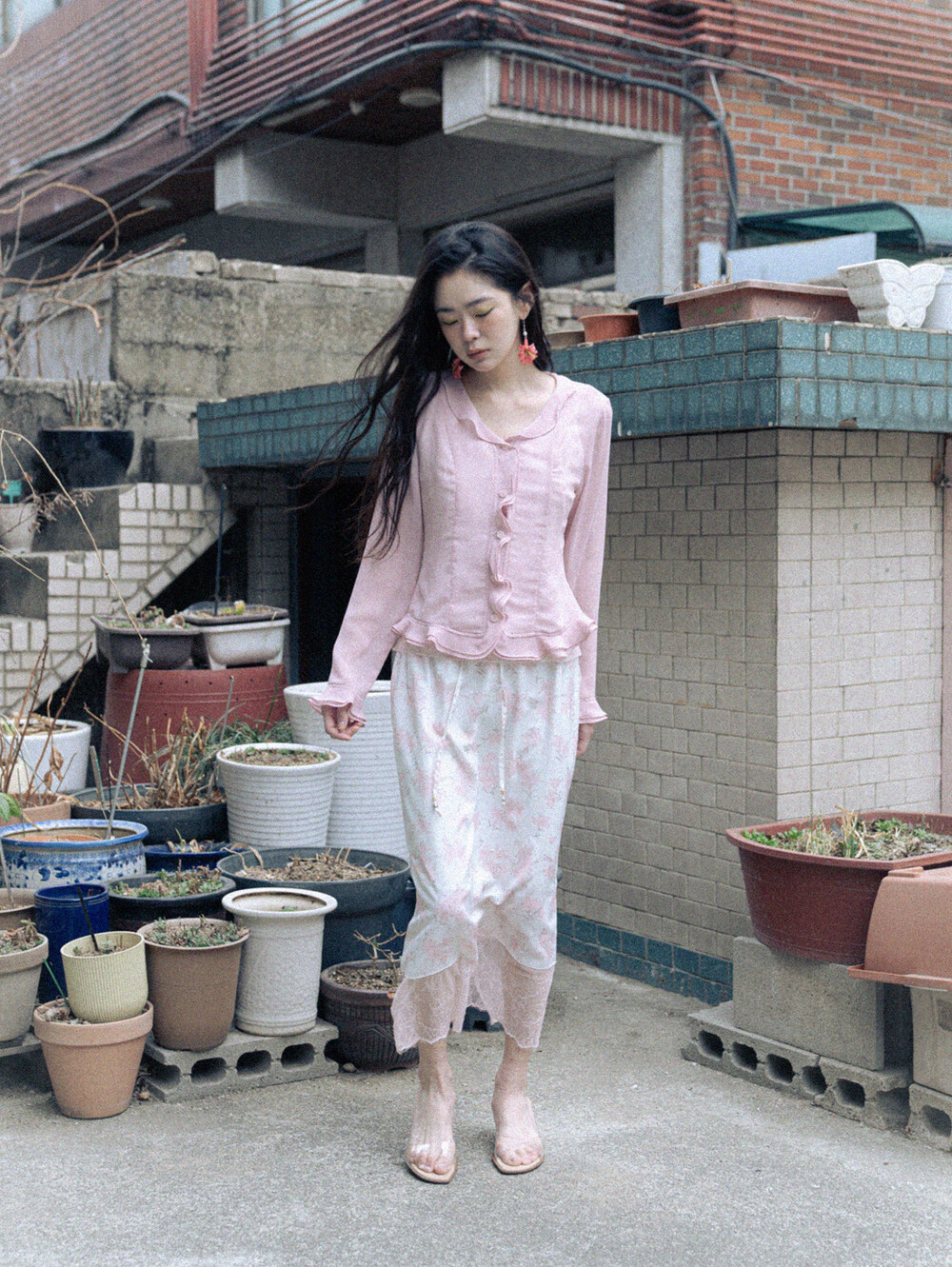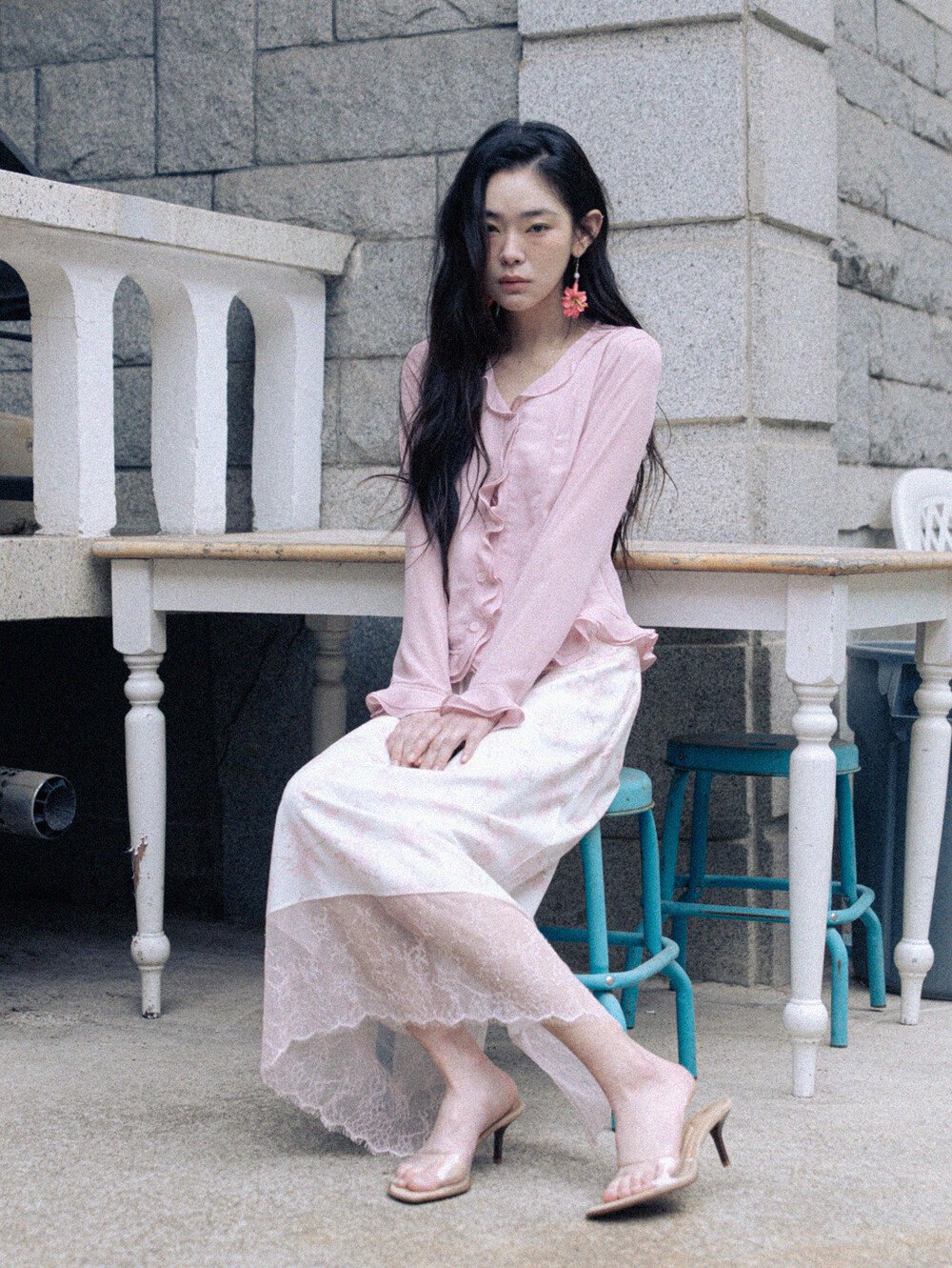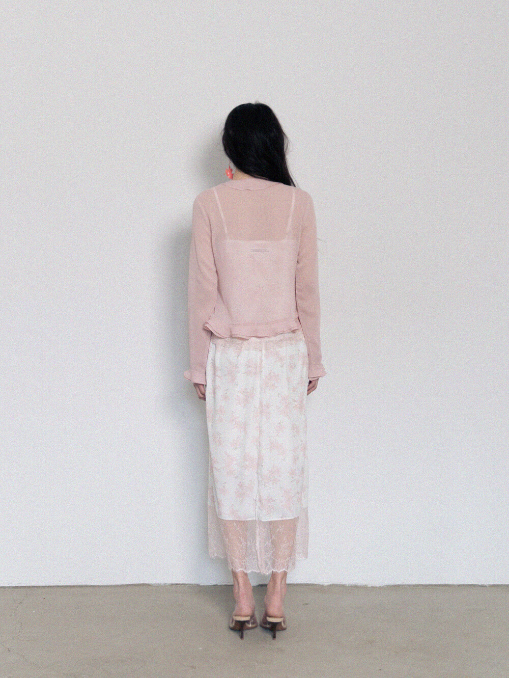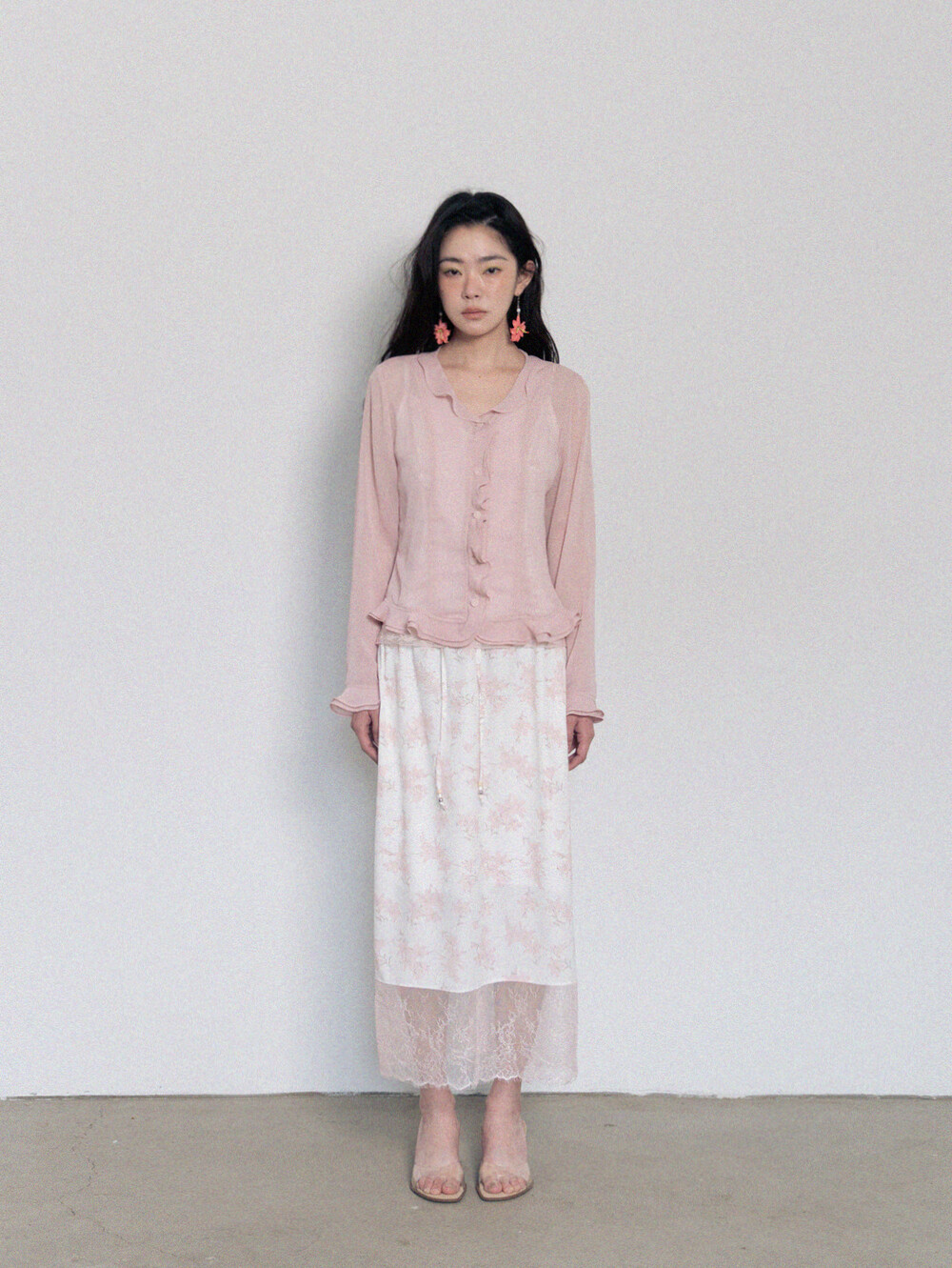 Sheer Frill Blouse-Pink