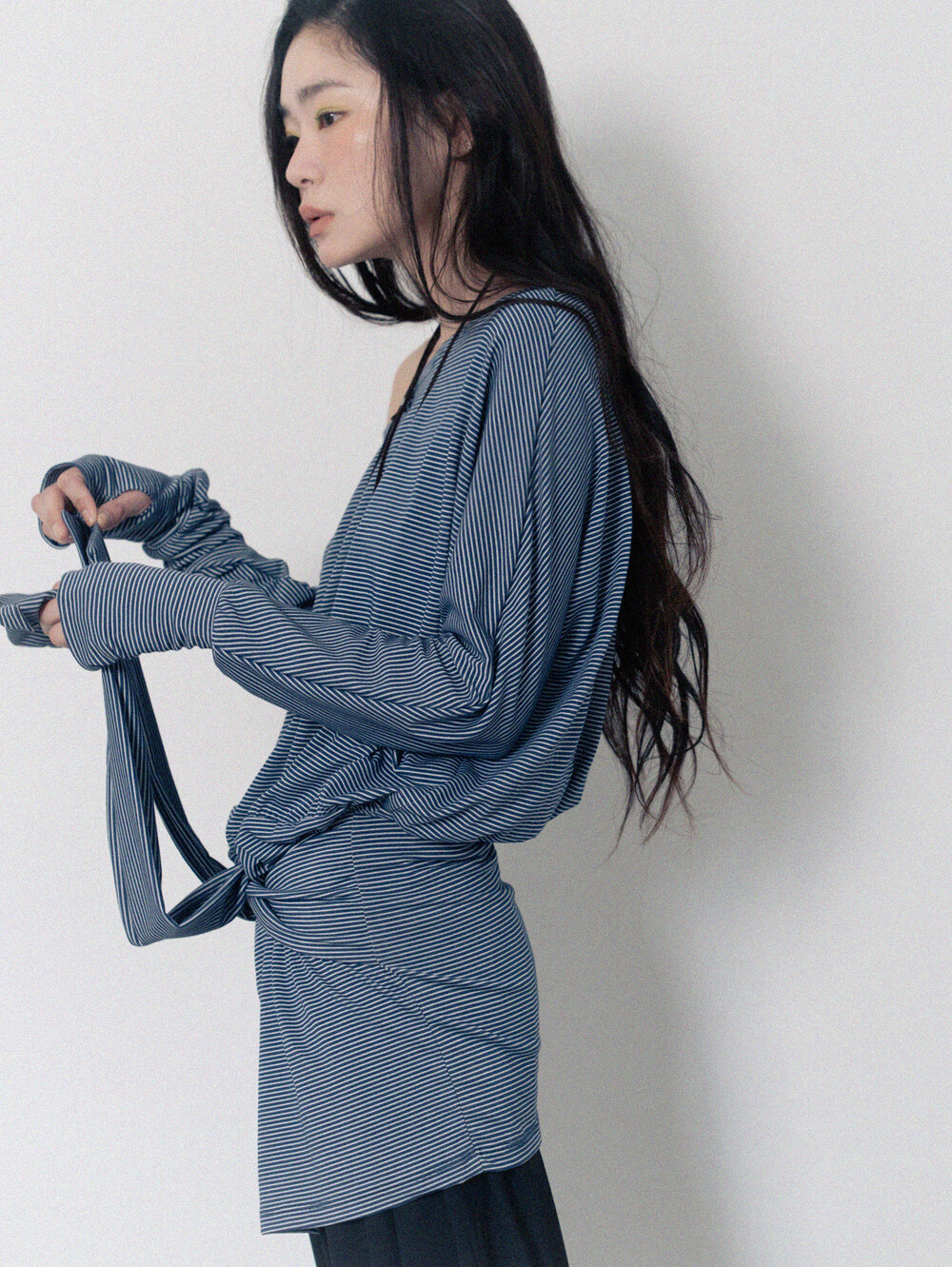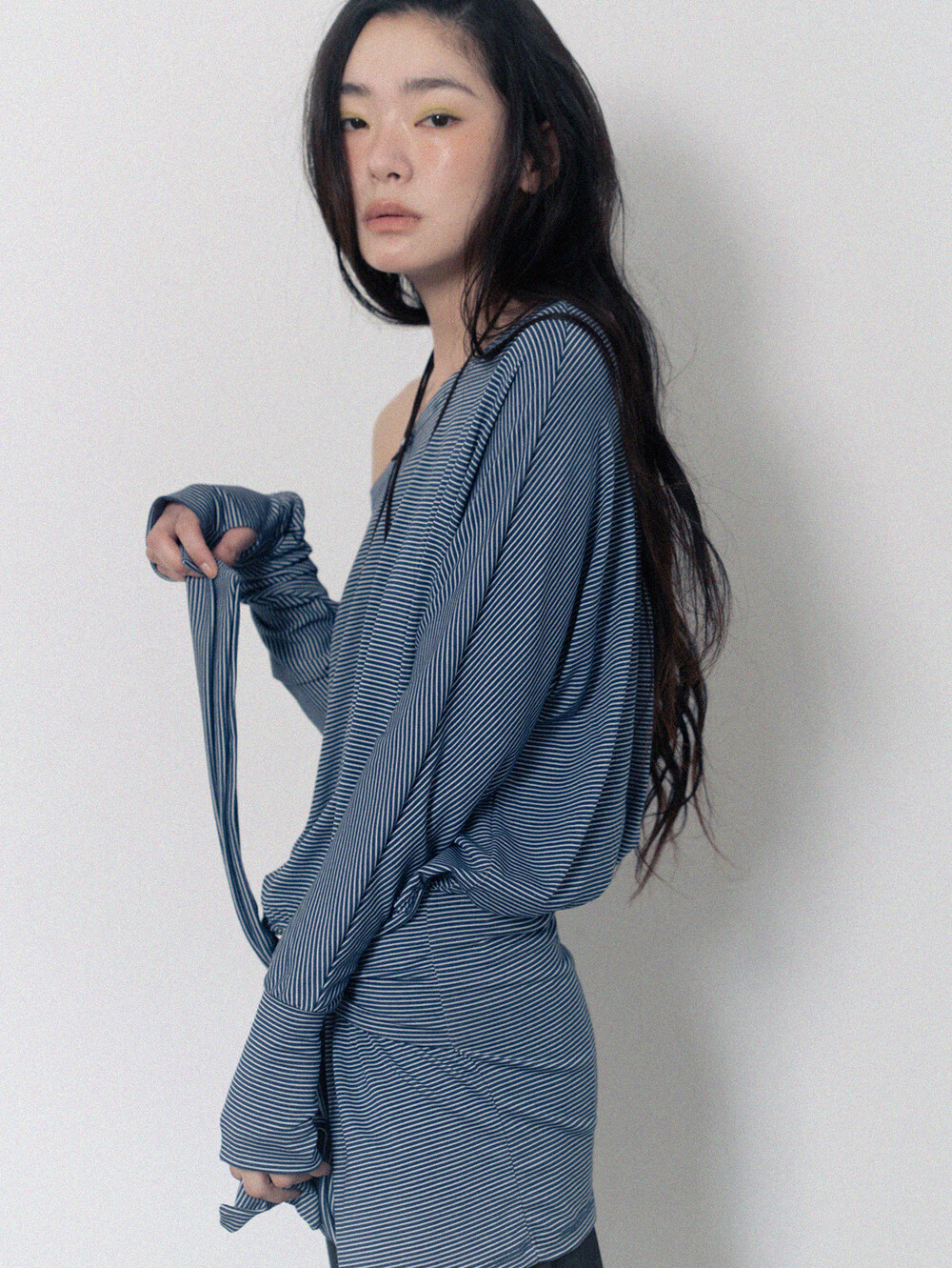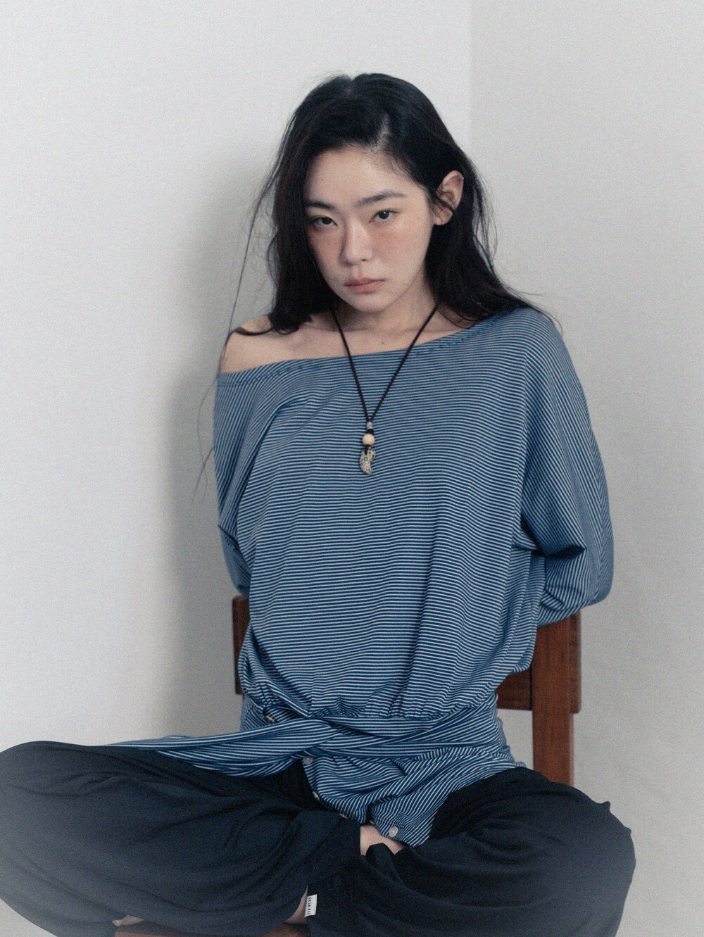 Stripe Off-Shoulder Dress - Navy