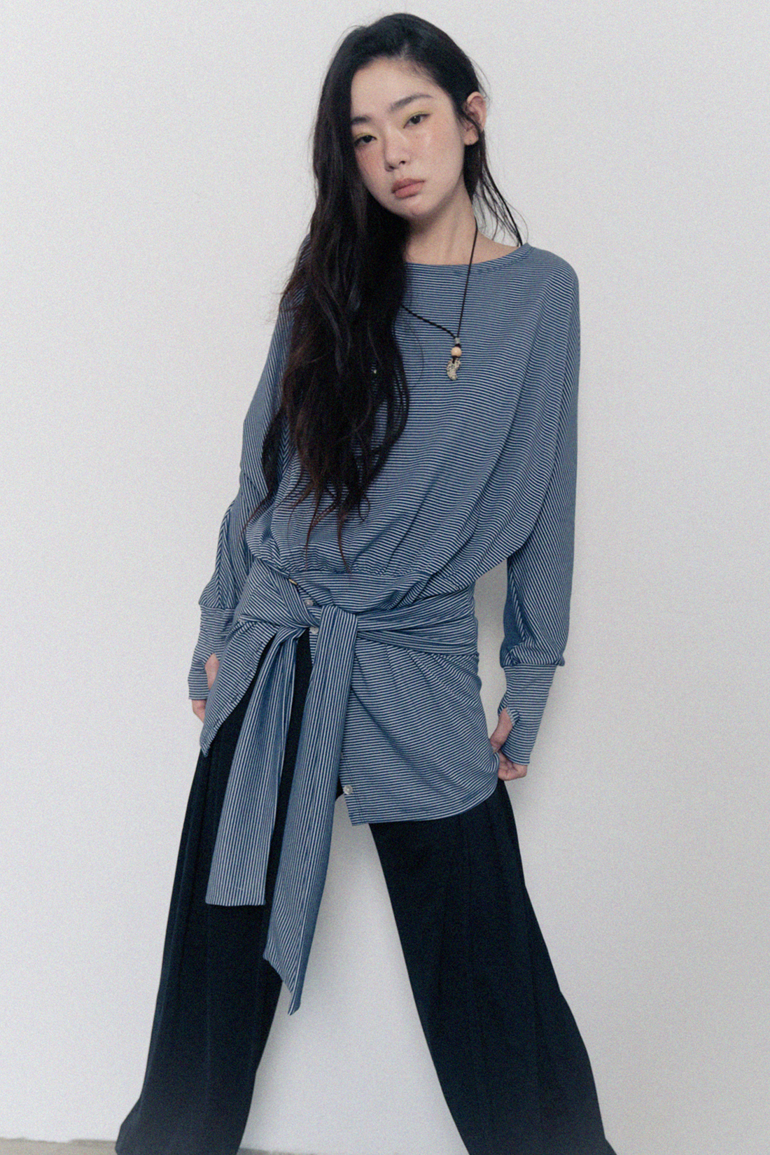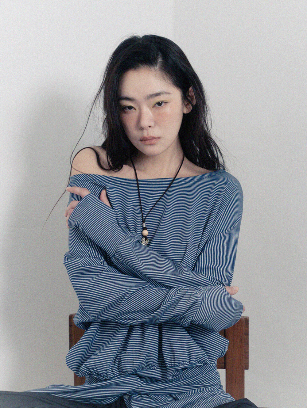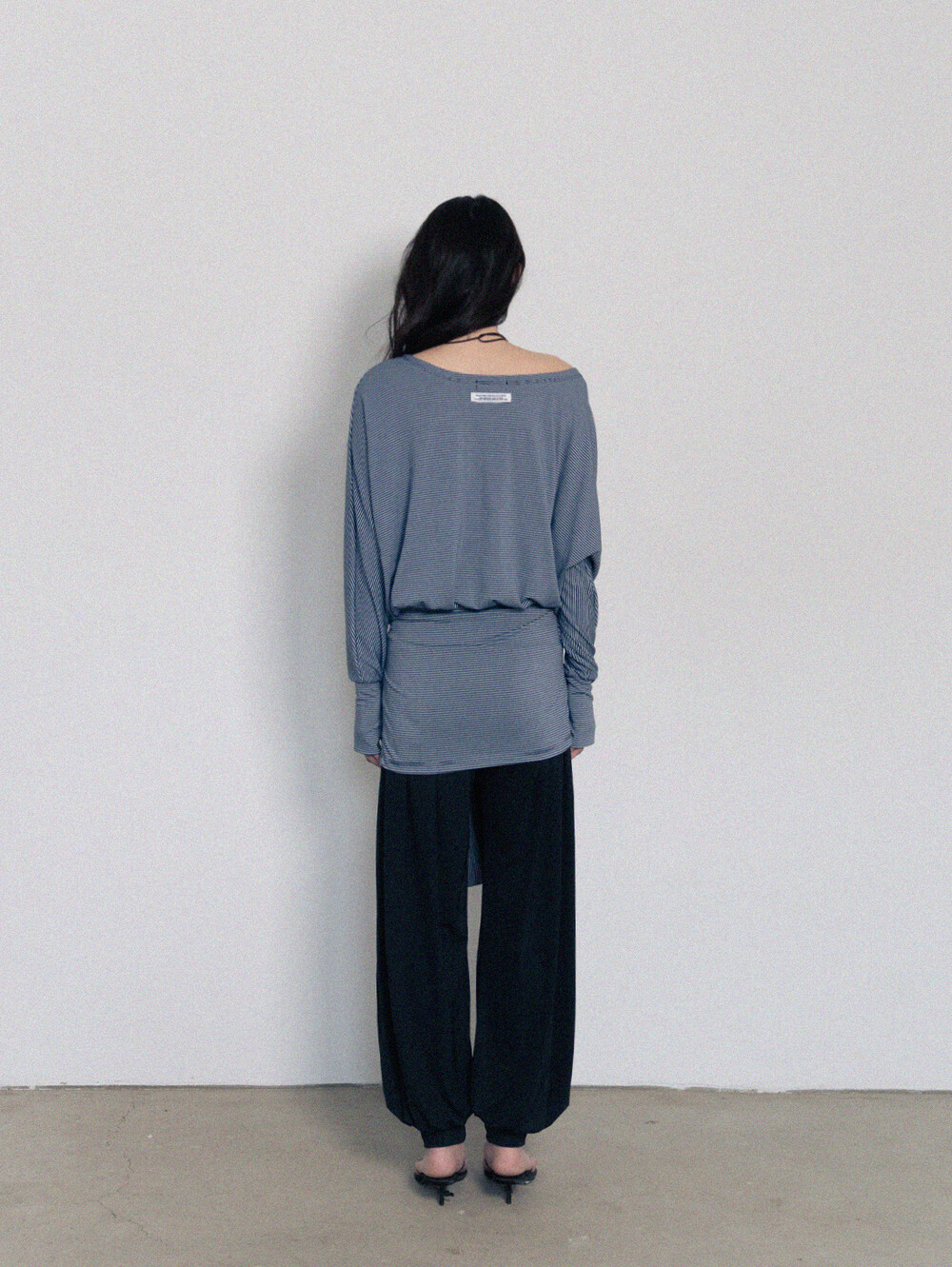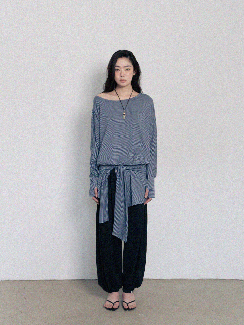 Stripe Off-Shoulder Dress - Navy